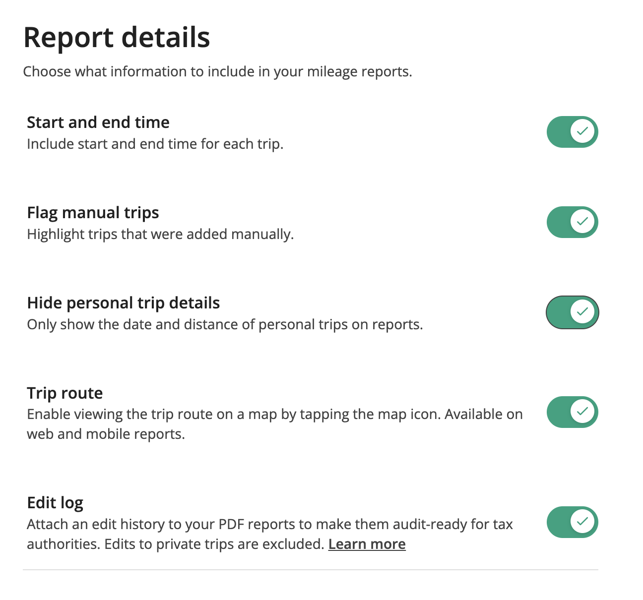 You can also find these options under Settings > Report details in the app.